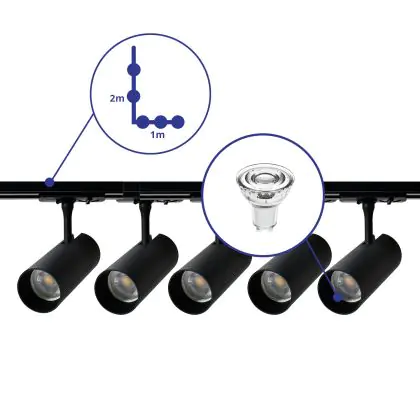 | Fabrikantnaam | Complete L shaped 1-Phase Track Set Black incl. 5x Spot fixture + GU10 2700K 3W Dim – 1 x 2 meter i | |