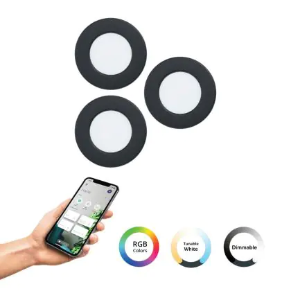 Eglo Connect.Z Smart Inbouw Spot Badkamerverlichting Fueva 6-Z Kunststof Zwart 8.4W 1020lm - 827-865 Afstembaar Wit + RGB | Dimbaar