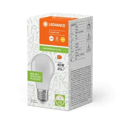 Ledvance Classic LED E27 Peer Mat 4.9W 470lm - 827 Zeer Warm Wit | Vervangt 40W - Gerecycled