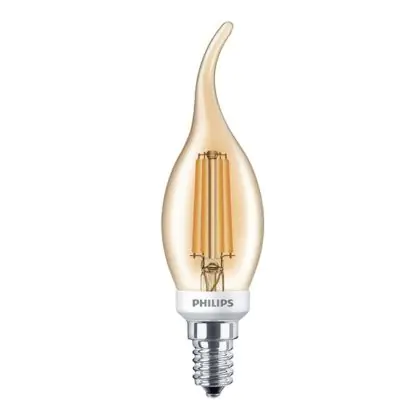 Philips Classic LED Kaars E14 gebogen punt Filament Goud 5W 410lm - 825 Zeer Warm Wit | Dimbaar - Vervangt 40W